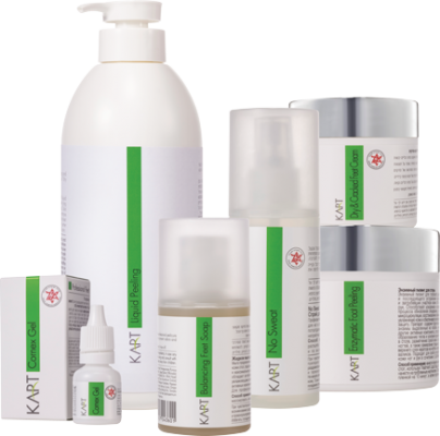 Уникальная линия профессиональных препаратов по педикюру, предназначена для высококачественного ухода за ногами, руками и ногтевой пластиной, в салоне и в домашних условиях. Эксклюзивные методики, разработанные компанией KART, позволяют мастерам педикюра найти нестандартное и эффективное решение многим эстетическим проблемам. В состав входят натуральные ингредиенты: фруктовые кислоты и ферменты, эфирные масла и лекарственные травяные экстракты, а также витамины.