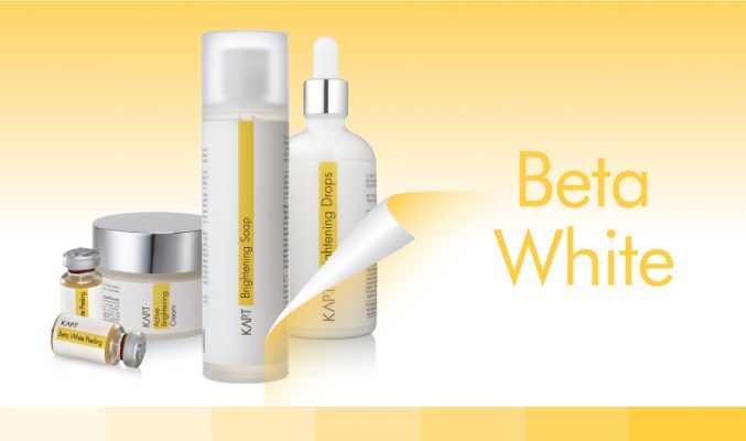 Арбутин – (который входит в состав комплекса β -White™) способствует предотвращению образования новых пигментных пятен. В сочетании с витаминами A, E, C, B5, положительно воздействует на жизненно важные процессы кожи. Происходит осветление кожи лица в целом, а также локальное воздействие на определенные пигментные пятна. Благодаря этим компонентам препараты линии Beta White являются активными антиоксидантами и способствуют оздоровлению кожи.